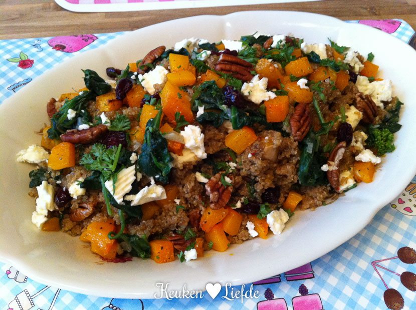 Als Johan thuis is ga ik een rondje hardlopen. Daarna bereid ik een quinoaschotel met geroosterde pompoen, spinazie en feta. Erg Lekker, licht en supersnel klaar.