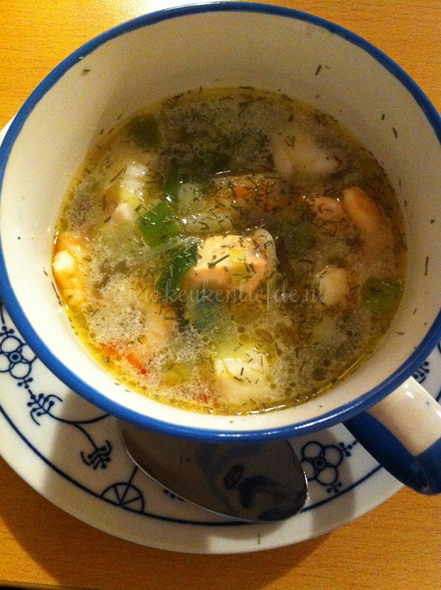 Tussen de middag lunch ik bij mijn ouders thuis. Mijn moeder heeft broodsnacks uit de oven en heerlijke vissoep met garnalen, witvis en zalm gemaakt. Smullen! Ik moet binnenkort ook maar eens aan de slag met vissoep, want het recept ontbreekt nog op KeukenLiefde.