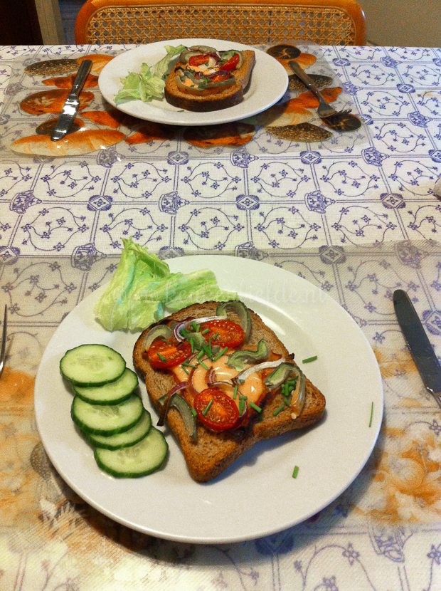 Hier wordt tevens duidelijk wat goede belichting en een beetje aandacht voor je bord al niet kan doen voor een foto. Dit bord lijkt toch in de verste verte niet op het bord dat ik eerder vandaag fotografeerde!