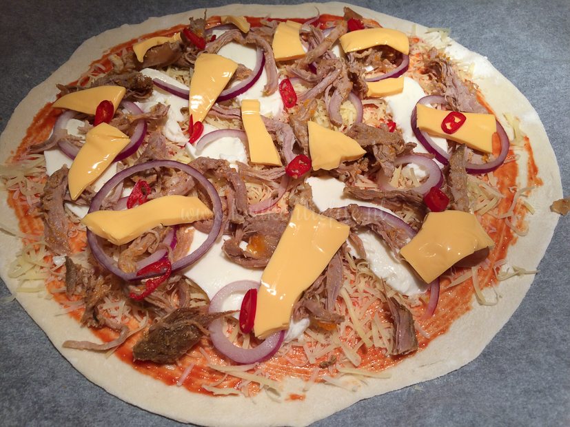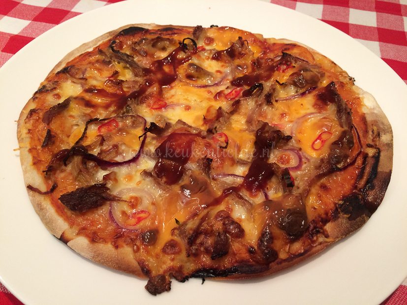 Na twee dagen broodjes pulled pork te hebben gegeten, is het vandaag tijd voor wat variatie. Het laatste restje pulled pork gebruik ik voor een lekkere pizza! 🙂 (Bekijk hier het recept voor zelfgemaakt pizzadeeg.)