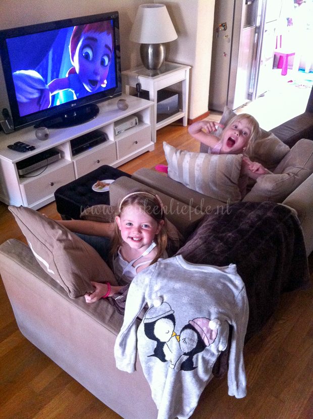 Uit school komt er een vriendinnetje spelen van Ella-Marie, dat is altijd een gezellige bende. Ze hebben welgeteld twee hele minuten Frozen zitten kijken, toen hadden ze er genoeg van en doken ze in het volgende project.