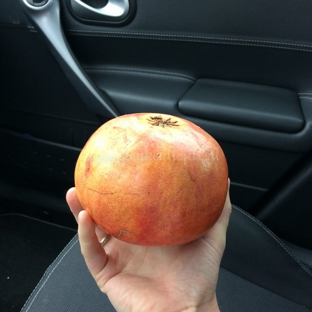 Een collega van Johan is op vakantie geweest naar Marokko en heeft een granaatappel voor ons meegenomen. Johan stuur me deze foto door. Wat een joekel!