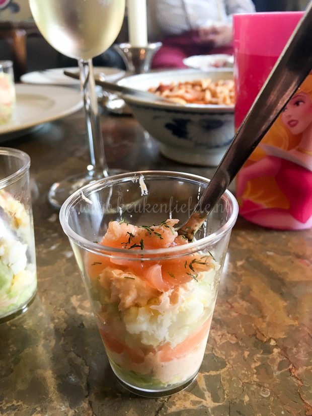 - Vis amuse met zalm, tonijn en garnalen