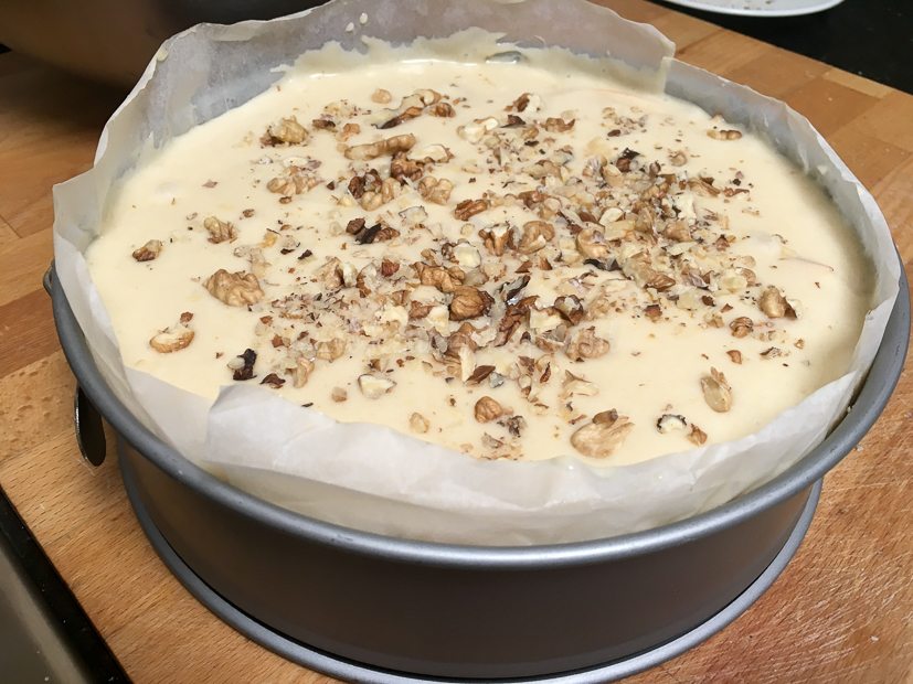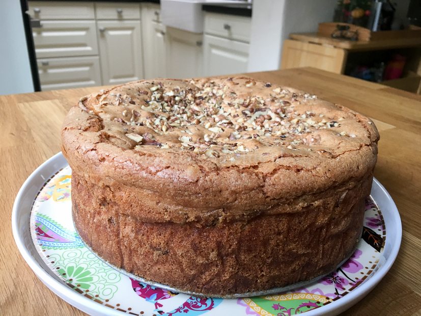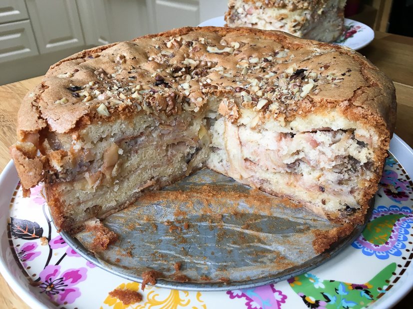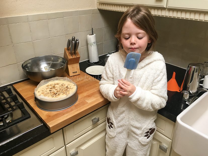 Op social media zie ik de een na de andere foto voorbij komen van de Hollandse appelcake en ik kreeg er zelf ook weer zin in. Ik ging dus vroeg mijn bed uit om te bakken. Een klein wollig beertje stond naast me om de lepel af te likken.