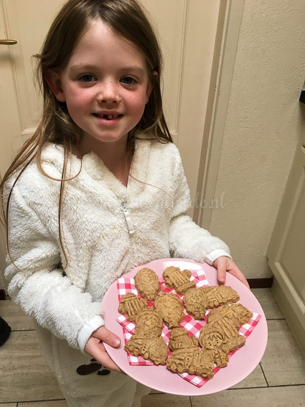 O, en ik neem twee kookvideo’s op. Ik maak een arretjescake en speculaasmuffins. Ze zijn heerlijk!