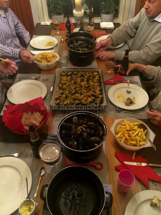Op het menu staan gekookte mosselen, gegratineerde mosselen met spinazie en frietjes. Jongens wat heb ik zitten schransen!