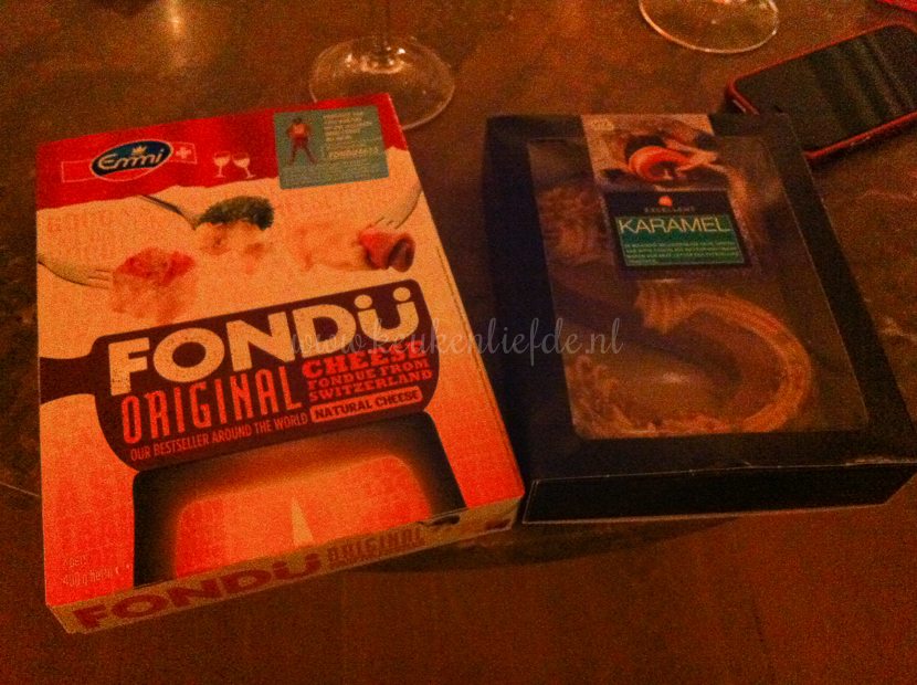 Mijn buit: kaasfondue en een chocolade-karamelletter. Wat kent die lieve sint me toch goed.