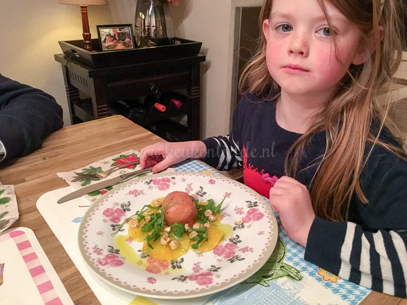 De zalmbonbons eten we ’s avonds als avondeten met wat geroosterd brood erbij. De pavlova kerstkrans is ons toetje. Tja, voor een foodblogger is het de hele maand december kerst.
