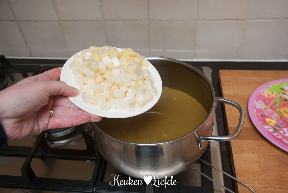 - 1 kleine aardappel, geschild en ik kleine blokjes gesneden