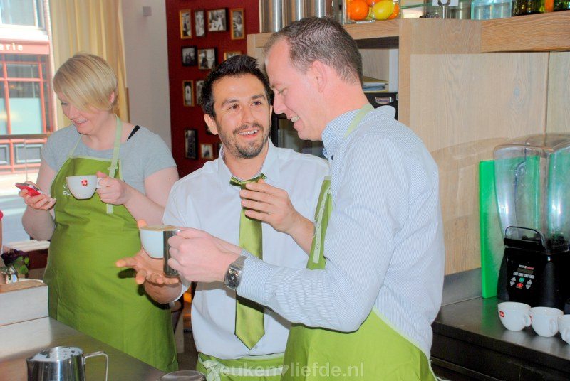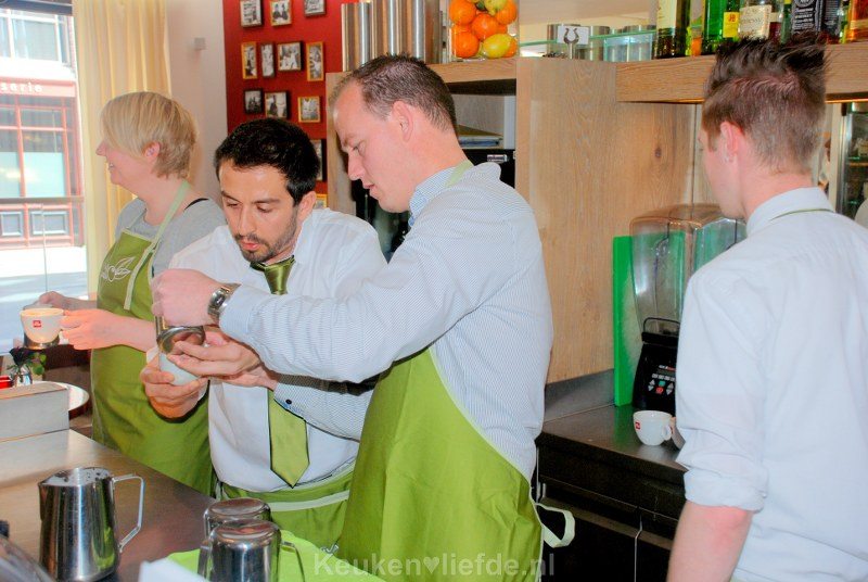 Enthousiast leert hij ons alles over koffie en laat zien hoe we zelf de lekkerste cappuccino kunnen maken met een dikke schuimkraag.