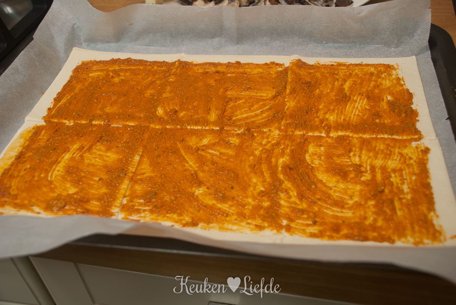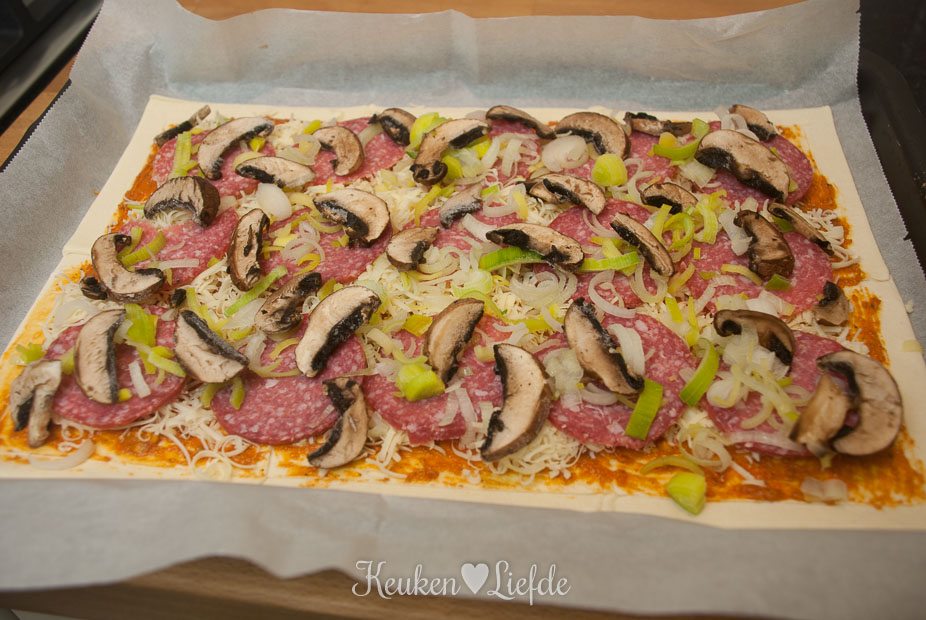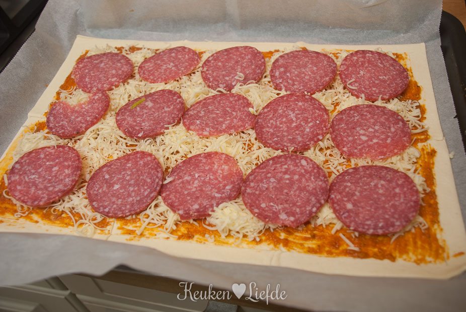 Bladerdeegpizza met salami
