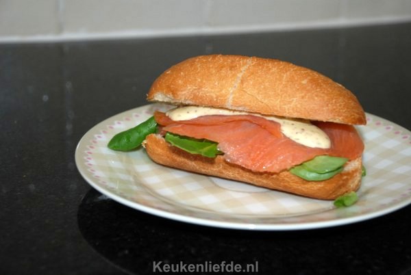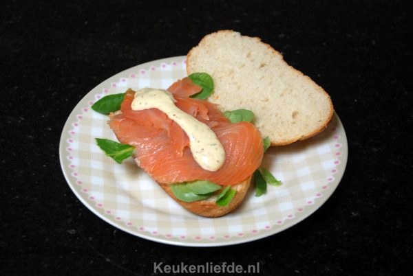 Lunchbroodje met gerookte zalm en dillesaus