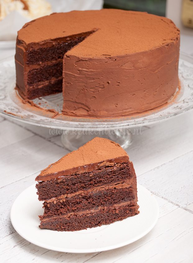 Naast appeltaart is chocoladetaart mijn favoriete gebak. Je mag me er ’s nachts voor wakker maken! In mijn eeuwige zoektocht naar de ultieme chocoladetaart heb ik in de loop der jaren verschillende recepten uitgeprobeerd. Eigenlijk heb nog nooit een vieze chocoladetaart geproefd, maar dat zegt waarschijnlijk meer over mij, dan over de recepten. Zolang ergens een flinke dosis chocolade in verwerkt is, hoor je mij niet klagen!
