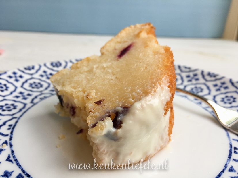 Ik bak een yoghurtcake met blauwe bessen en wittechocoladeglazuur. Recept volgt!