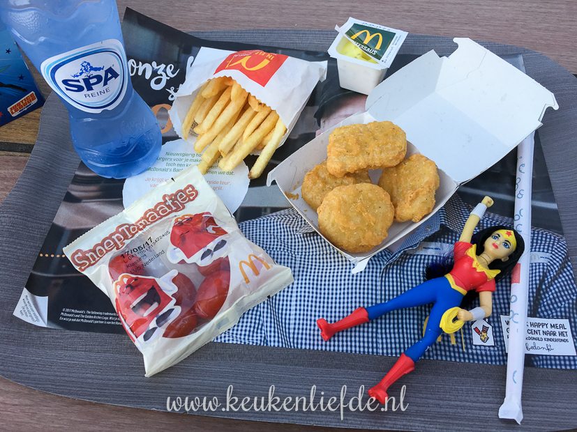 Johan zit voor zijn werk in Groningen en komt niet thuis vanavond. Omdat het tropisch warm is trakteer ik Ella op een diner bij de Mac. Moet kunnen een keertje. Toch?