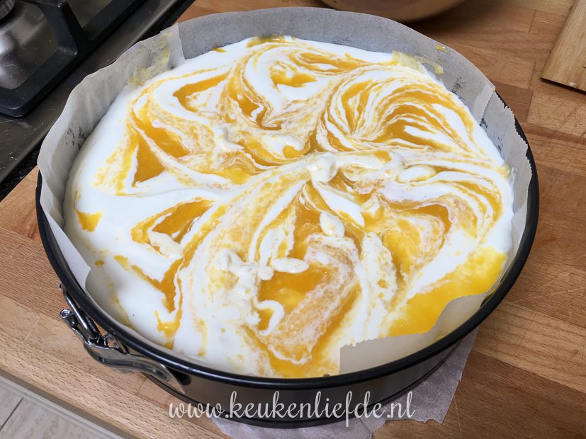 ’s Ochtends maak ik een yoghurttaart met mango en witte chocolade die heel erg lekker is! Recept ga ik met je delen.