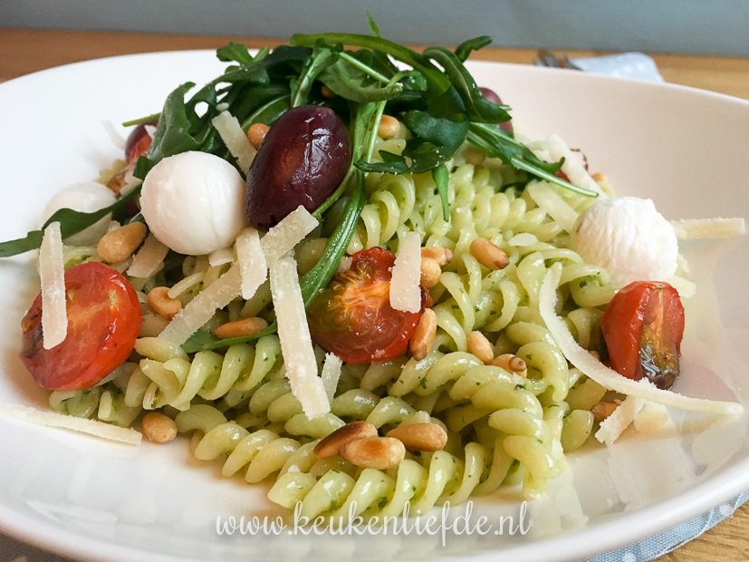 We eten pasta pesto! Met zelfgemaakte pesto, daar kan namelijk geen potje aan tippen. Recept voor de pasta pesto ga ik met je delen.