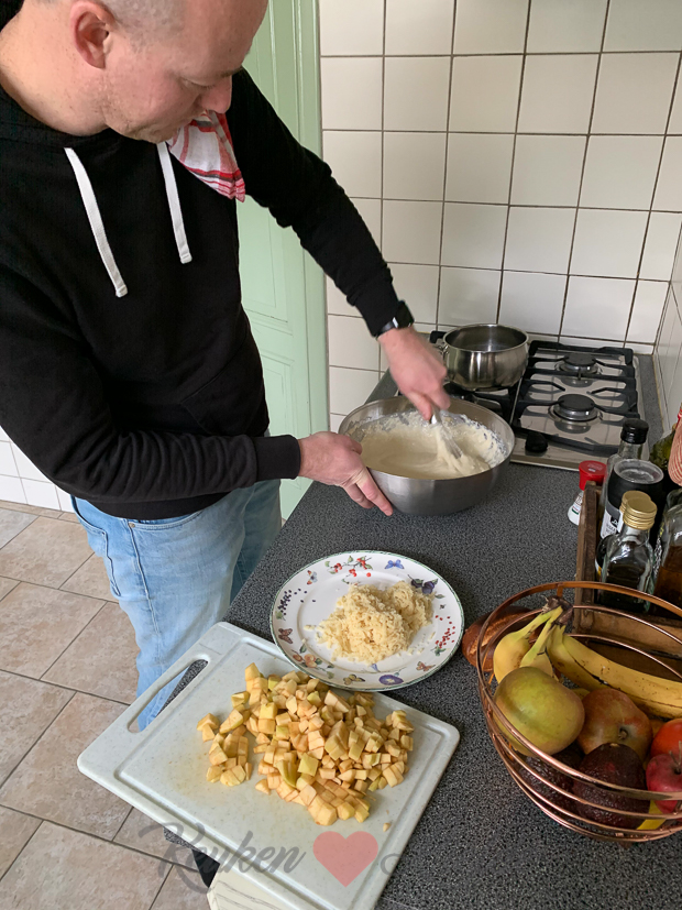 Natuurlijk horen daar oliebollen bij. We maken ons favoriete oliebollenrecept, maar dit keer voegen we nog een extra ingrediënt toe: geraspte amandelspijs! Ze waren zo lekker dat ik het recept met je ga delen. Je moet alleen wel even geduld hebben… 😉 Johan zijn ouders en vrienden van ons komen ook gezellig langs om te proeven. Onze Culina Flamma zorg ervoor dat we het niet koud hebben tijdens het bakken en proeven.
