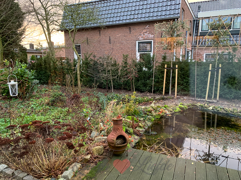 Johan zijn ouders komen ’s ochtends twee sierappelboompjes brengen. De boompjes had Johan jaren geleden cadeau gegeven aan zijn opa en oma, maar nu ze er allebei niet meer zijn wilde Johan de boompjes graag in onze tuin neerzetten. De kleine sierappeltjes zijn heel mooi om binnen en buiten te gebruiken als decoratie en in kransen. We hebben ze een mooi plekje gegeven in de zijtuin.