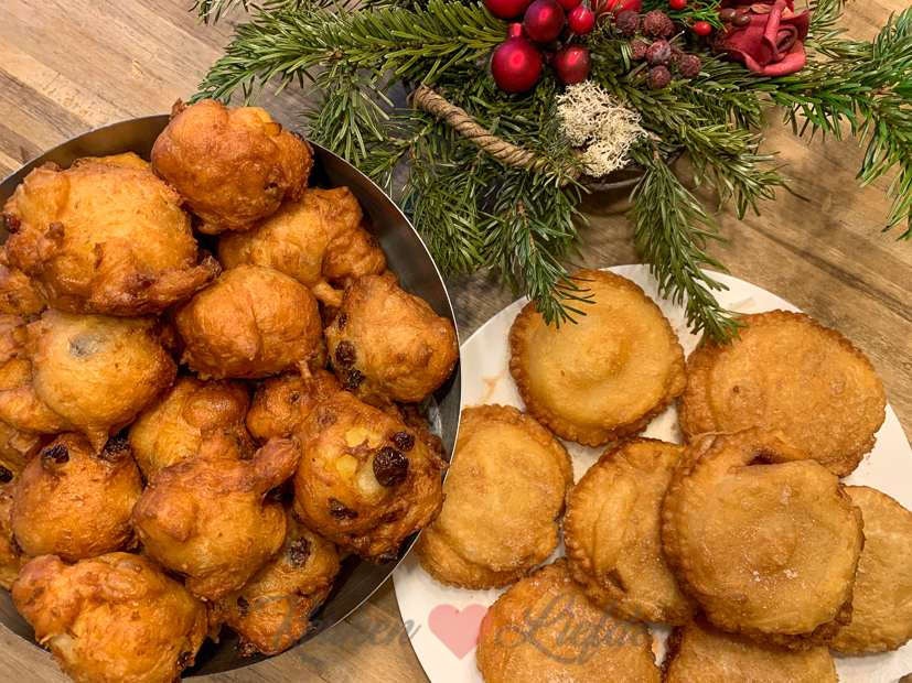 Oudjaarsdag! Ik sta al vroeg in de keuken om oliebollenbeslag en appelbeignets te maken. Het was de eerste keer dat ik appelbeignets van bladerdeeg maakte en dat ging niet helemaal zonder slag of stoot. Ik had geen goede uitsteker, het bladerdeeg scheurde, enz. enz. Wat een gepruts zeg! Gelukkig kreeg ik er op het laatst toch nog een beetje handigheid in… Ik heb beide recepten trouwens uitgeschreven (inclusief mijn tips en trics! ;)) zodat ik ze volgend jaar met je kan delen. Nog even geduld dus… 😉