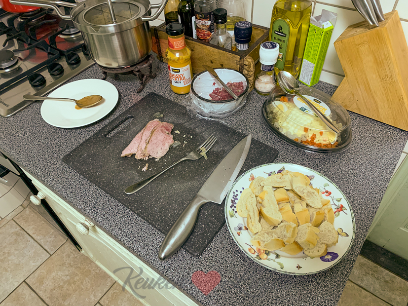 Enige voordeel van deze hele thuiswerksituatie is de gezamelijke lunch. Normaal zit ik alleen met een tosti achter mijn computer.