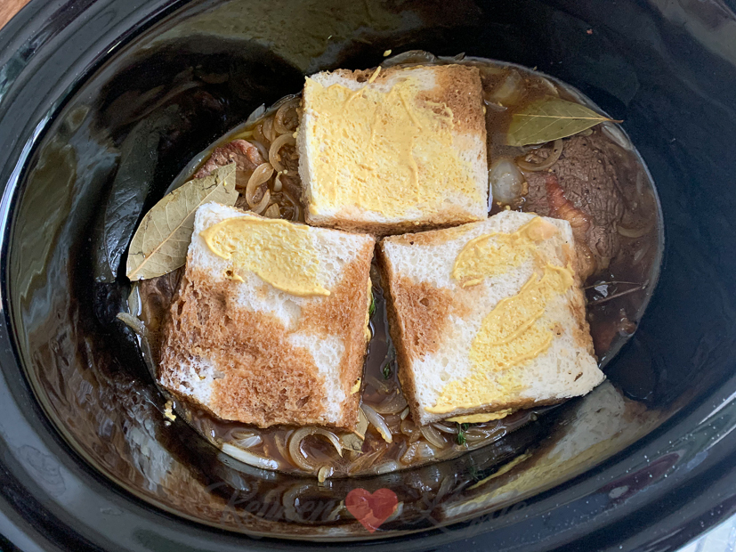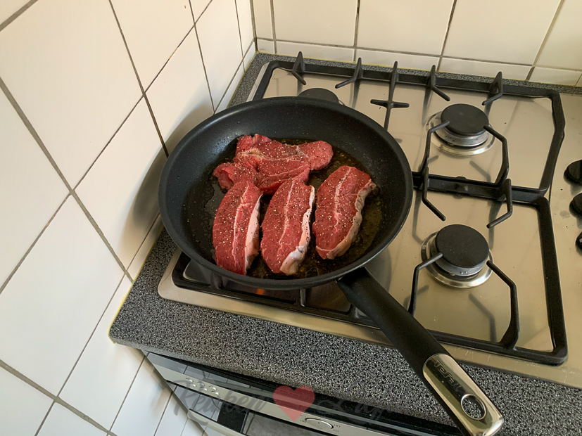 Ook zet ik de slome weer aan het werk voor het avondeten. Bij gebrek aan riblappen maakte ik Belgisch stoofvlees van sukadelappen. In het kerstpakket van Johan zat een klein potje met appel-perenstroop dat ik ook toevoegde aan de saus met een scheutje witte balsamicoazijn voor het zuurtje. Het resultaat was verrassend lekker. De sukade had iets langer nodig, maar was nog zachter dan dikke rib. De saus bind ik op het laatst met een maizenapapje, zodat hij de juiste dikte krijgt. Een blijvertje deze variant! We aten het stoofvlees met dikke frieten uit de airfryer en een salade.