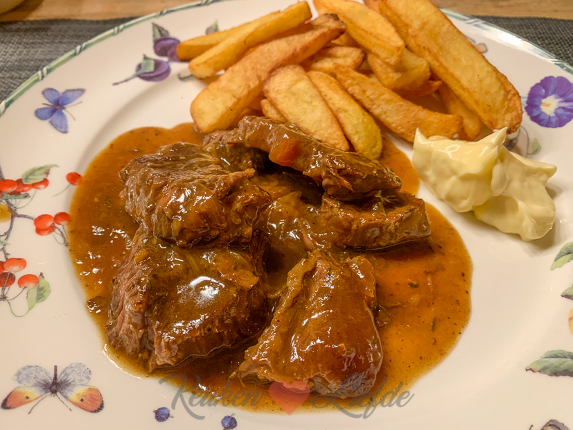 - Belgisch stoofvlees met dikke frieten en zure mayonaise