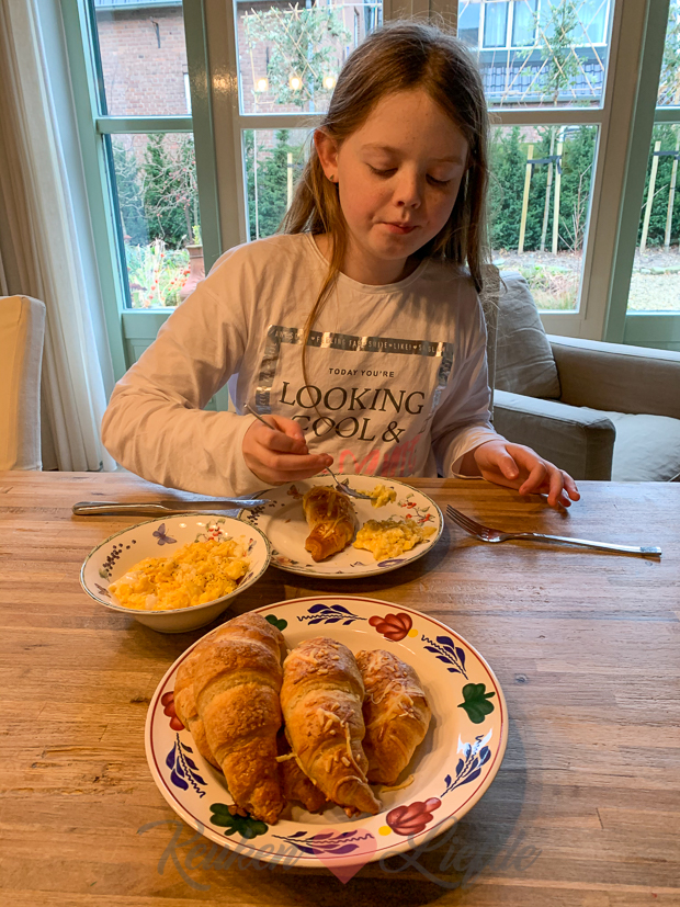 Breakfast tiiiiime! Afbakcroissantjes met roerei!
