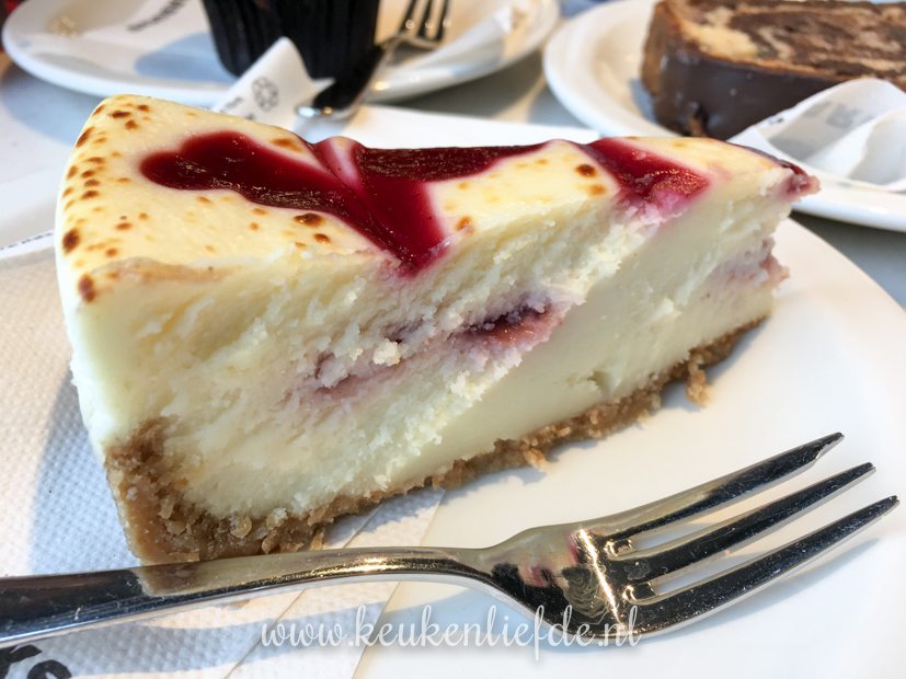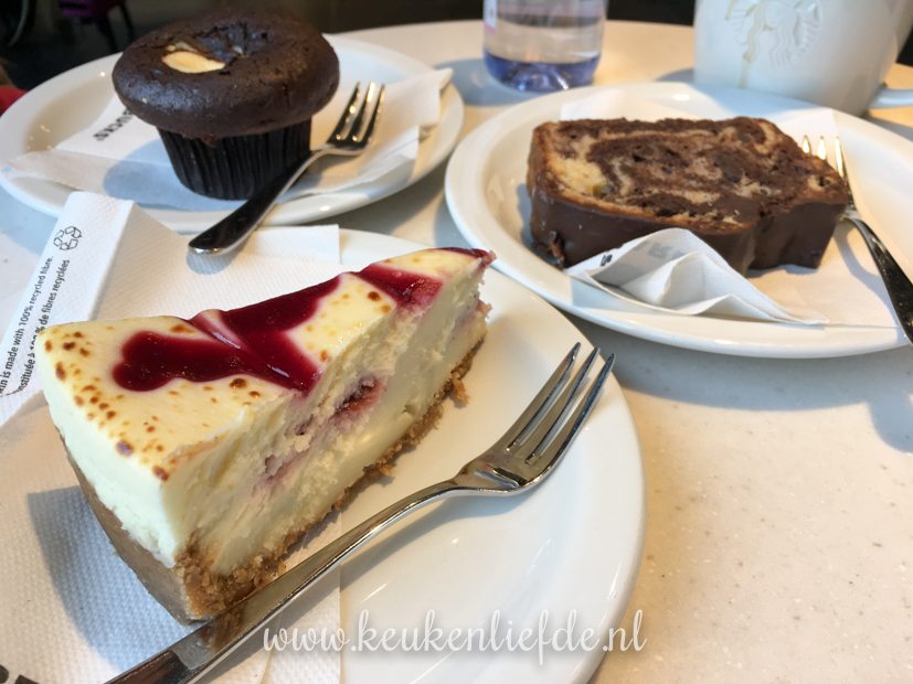 We stoppen halverwege de rit voor koffie en een taartje bij Starbucks. Ik neem de frambozencheesecake en dat was een goede keus: #lekkerstecheesecakeooit. Ik ben vastbesloten om hem thuis na te maken.