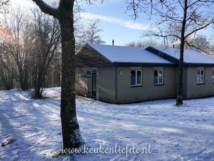 We komen om half drie aan op het park en kunnen om drie uur ons huisje in.