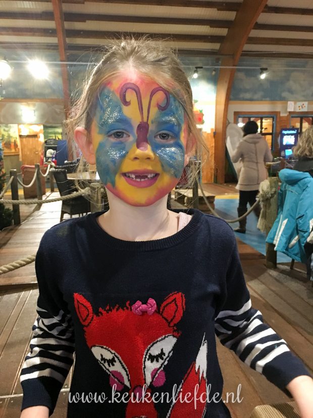 We blijven vandaag op het park. Ella-Marie wordt geschminkt in de Bollo club en ’s middags gaan we bowlen.