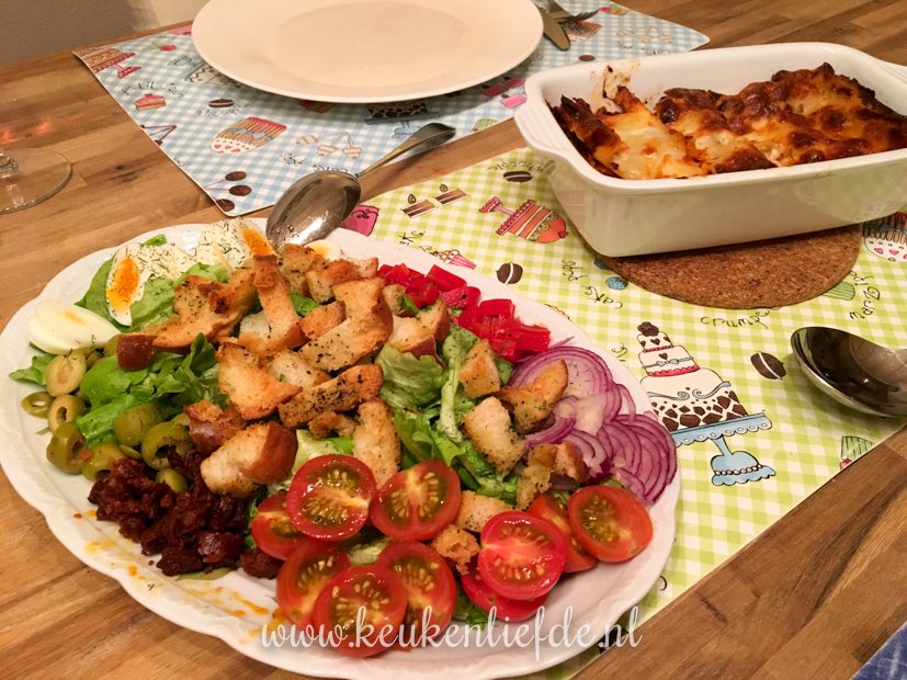 Na mijn moment van euforie is het weer tijd om de schort om te knopen. Vanavond eten we lasagne en ik vind bolognesesaus het lekkerst als hij lang heeft kunnen pruttelen.