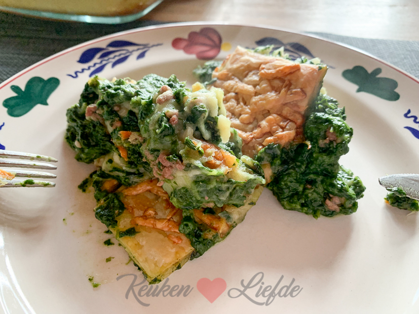 ’s Avonds maak ik een spinazie-ovenschotel met gehakt, aardappelpuree en bladerdeegdakje. Het recept is van mijn moeder en vind je hier op Keukenliefde. Het is echt een lekker gerecht en het was veel te lang geleden dat hij bij ons op het menu stond. Ella-Marie houdt niet zo van ovenschotels maar dit is de enige variant die haar goedkeuring heeft…. Mevrouwtje Fijnproever!