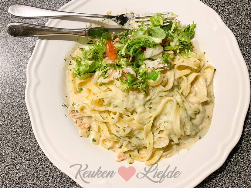 Verder maakte ik nog een kookboekrecept. Iets met zalm, pastabladen en romige groentesaus in een ovenschaal… ?