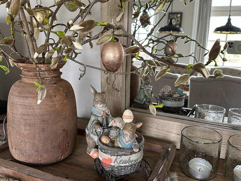 We slapen lekker uit en rommelen een beetje in huis. Zo haalde ik eindelijk de kerstkrans weg die nog steeds op de keukentafel lag en verving hem door een zelf geknutseld paasachtig iets. Ook werden er wat takken van de magnoliaboom geknipt en op een vaas gezet met wat eieren erin. ’s Middags kwamen vrienden van ons met hun kinderen langs en werd er lekker bijgekletst en geborreld. Om zes uur ging de tv aan voor de F1 race in Saoedi-Arabië. Wat een heerlijke race weer!