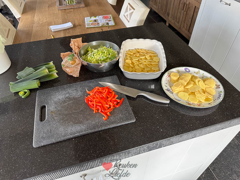 ’s Middags maak ik een lekker recept dat al heel lang op Keukenliefde staat maar toe was aan een update: de ovenschotel met prei, gehakt, aardappelschijfjes en kerriesaus. Het recept werd gefinetuned en de roomsaus geperfectioneerd. Hij is zo lekker! Het recept is geïnspireerd op het pakje sausmix van een bekende pakjes fabrikant, maar dan dus zelfgemaakt. Het aangepaste recept vind je hier.
