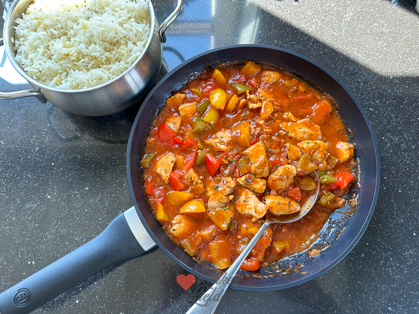- Ik serveerde de kip goulash met rijst en een lepeltje crème fraîche.
