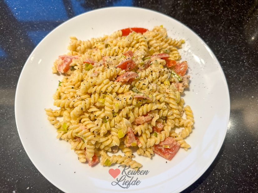 Ik ga de keuken in om dumplings te maken. Die stonden al een tijdje op mijn nog te koken lijstje want Ella-Marie is er dol op. Ik wil ook het deeg zelf maken dus daar begin ik mee. Als het deeg klaar is maak ik de vulling en kunnen de dumplings uitgerold, gevuld en gebakken/gesmoord worden. Al met al een tijdrovende klus waar ik me een beetje op verkeken had. Het dichtvouwen van de dumplings wilde niet echt lukken en de vulling vond ik ook niet zo lekker. Ik besloot om wat deeg te bewaren en het morgen nog een keer te proberen. Na de dumplings ga ik meteen aan de slag met het avondeten. Ik maak een lekkere pasta met prei, tomaat, Boursin en tonijn. Dit recept. Een van onze favoriete pasta’s op dit moment. Zo lekker!