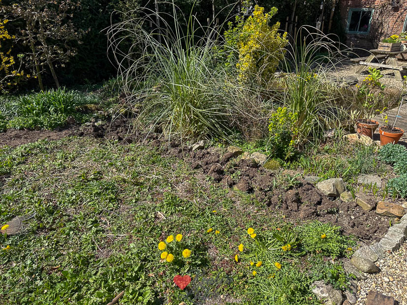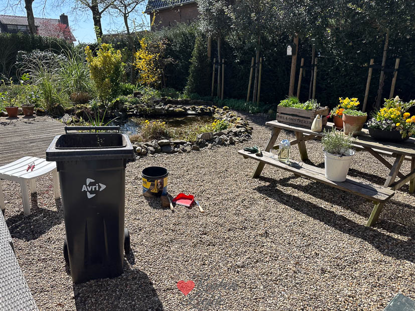 Vandaag ben ik de hele dag in de tuin te vinden. In de zijtuin hebben we een stukje grond waar eerst allemaal struiken stonden die we vorig jaar gekapt hebben. Dit jaar moet er een grasveldje komen. Maar daarvoor moet eerst de grond omgespit worden en het onkruid weggehaald worden. Na een hele week met mijn neus achter de computer en in de pannen vind ik dat een heerlijk klusje. Verstand op nul en scheppen maar! 😂 Af en toe even een pauze om iets te eten in het zonnetje. Wat wil een mens nog meer. Ik kreeg het net niet helemaal af dus volgende week ’s avonds spit ik het laatste stukje om. En dan even kijken wat de volgende stap wordt. Ik heb het nog nooit gedaan dus denk dat ik het wel kan. 😁