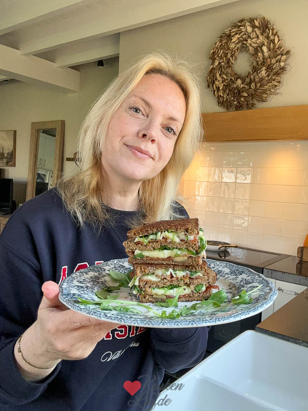 Ella is ziek en blijft thuis vandaag. Halverwege de ochtend breng ik haar een lekker ontbijtje/lunch om een beetje op krachten te komen. 😉 ’s Middags maak ik twee nieuwe recepten en video’s voor KL. Ze komen er snel aan.