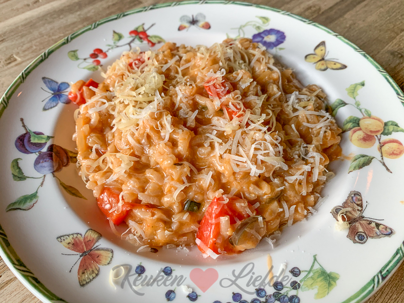 ’s Avonds maak ik tomatenrisotto met courgette, aubergine en paprika. Lekker!