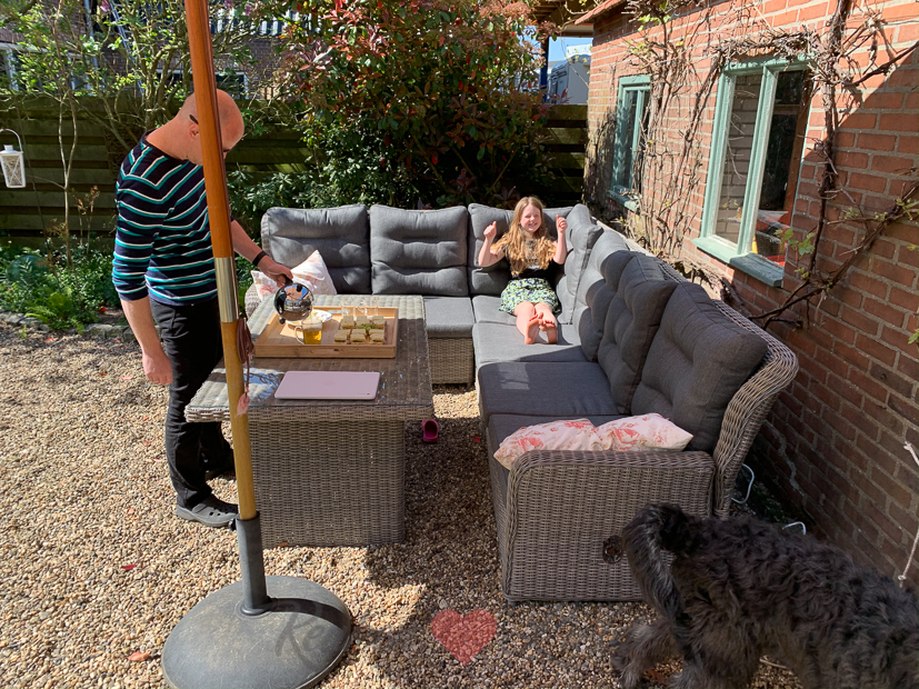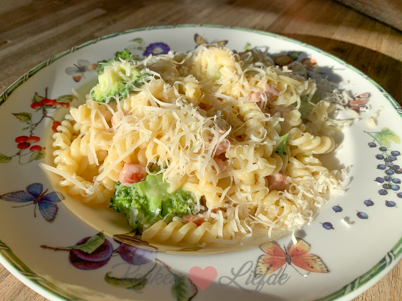 Vandaag gaat Johan voor het eerst sinds vijf weken weer werken op kantoor bij zijn baas. Ella-Marie en ik zijn thuis en beginnen de dag zoals elke maandag op kantoor. Rond negen ’s ochtends komt het huiswerk van Ella-Marie binnen. Dan begint ze aan haar schoolwerk. Ik werk dit grotendeels dit Kijkje in de keuken uit en help Ella-Marie soms als ze iets niet snapt. Tussen de middag gaan we samen buiten lunchen. Ik maak Hawaï tosti’s met brie, ananas en ham. Rond twee uur ’s middags is Ella klaar met haar schoolwerk en heeft ze vrije tijd. Ik werk dan nog even op kantoor en rond een uurtje of vier gaan we wandelen met Nacho. ’s Avonds kook ik pasta met spekjes, broccoli en kaassaus. Ongeveer dit recept, hoewel ik hem altijd anders maak afhankelijk van wat ik in huis heb.