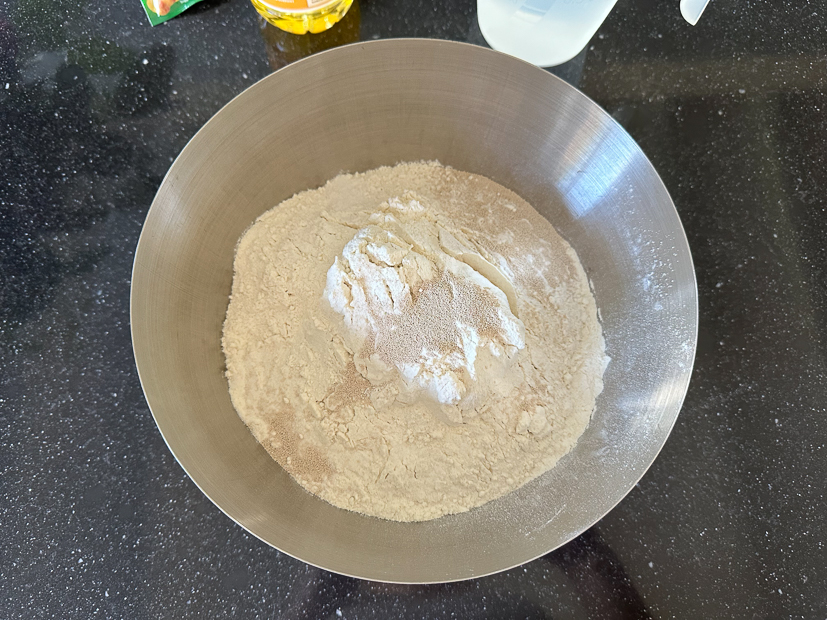 Ik laat het deeg rijzen in een afgesloten pedaalemmerzak die ik eerst lichtjes heb bestrooid met bloem.