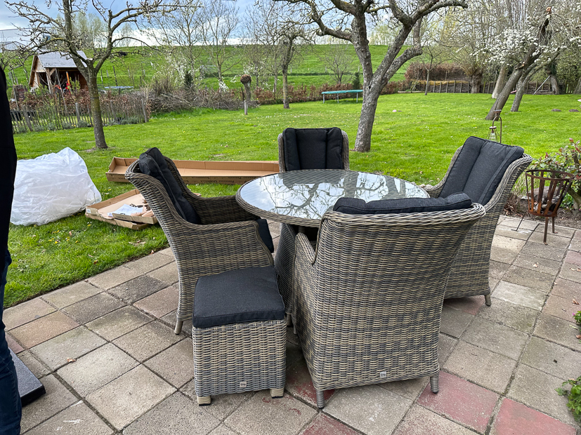 Ik sta weer in de keuken om een paar nieuwe recepten voor KL te maken waaronder Turkse pizza. Het deeg kneden, gehaktsaus maken en het uitrollen, beleggen en bakken was een klusje (ik maakte een grote hoeveelheid zodat ik ook wat kon invriezen) maar het lukte en was heerlijk! Ik bakte de Turkse pizza’s eerst in de elektrische pizzapan maar later in de oven. De oven heeft mijn voorkeur omdat ik het idee had dat het gehakt niet echt goed gaar werd in de pizzapan. Verder maakte ik ook nog een lekkere salade met krieltjes en asperges en een broodje met pulled zalm. Alles smaakte goed dus de recepten komen eraan. Tussen de bedrijven door werd ook de nieuwe tuinset en parasol bezorgd die we onlangs hadden gekocht en ’s avonds gingen Johan en ik nog even aan de slag om die uit te pakken en op zijn plek te zetten. Laat het mooie weer maar komen! 🌞