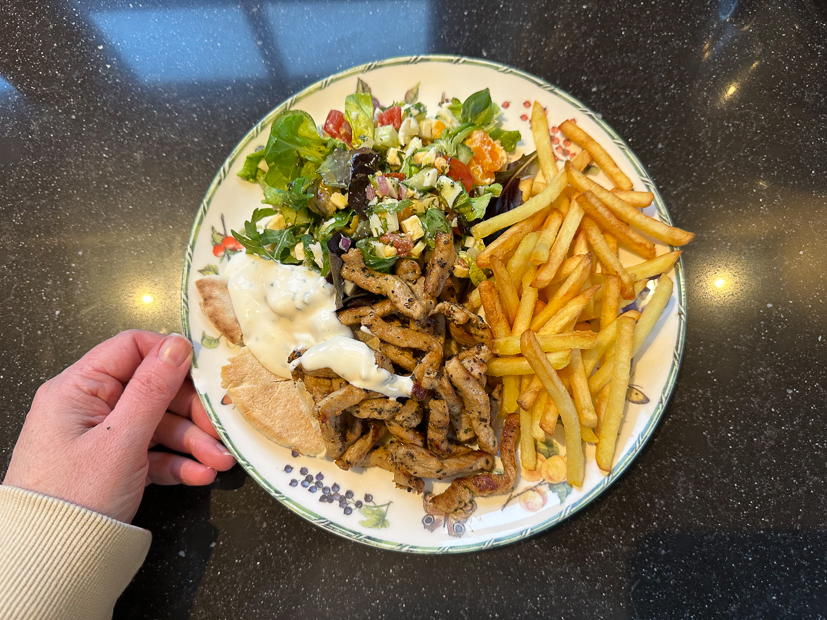 Vandaag staat er niks op de planning en doen we lekker rustig aan. We slapen uit, ontbijten samen en rommelen wat in huis. Ella wil ’s avonds graag shoarma eten dus halen we daar nog wat boodschappen voor. Dit keer maak ik shoarma van à la minute varkensfiletlapjes die ik lichtjes kruid met dezelfde kruiden als gisteren en erbij eten we frietjes uit de aerofryer, pitabrood (Johan en ik vullen ons pitabrood nooit maar scheuren het in stukken), salade en knoflooksaus.