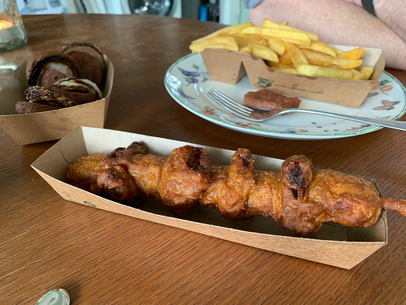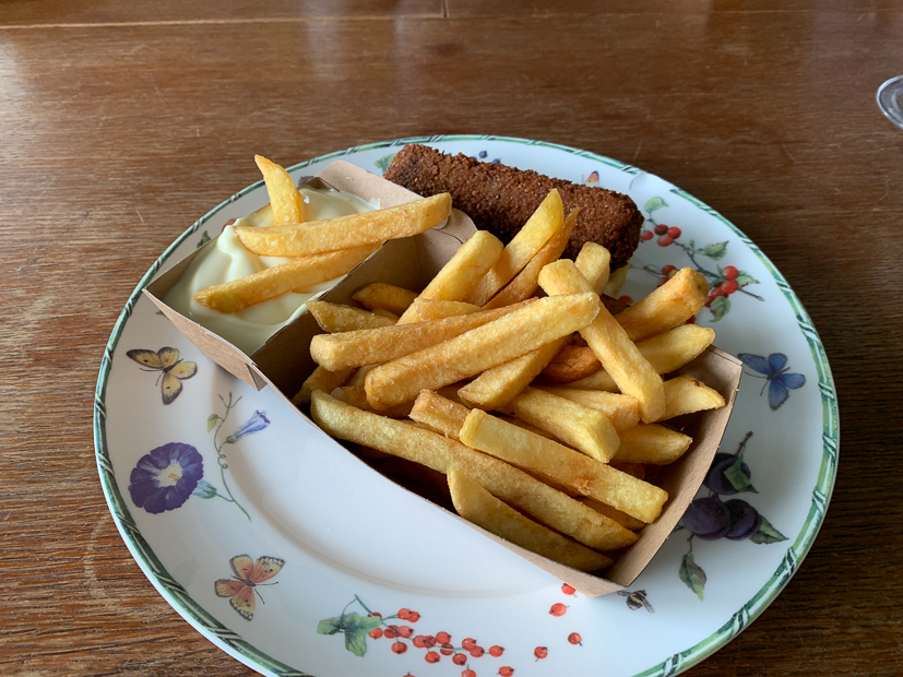 Frietjes als avondeten! Vandaag was een rommelige en chaotische dag en kwam ik niet toe aan de dingen die ik wilde doen. Voor het avondeten wilde ik een grote pan bami maken maar toen ik daarmee wilde beginnen was het al half zeven en was de puf om te koken verdwenen. Dus Johan gebeld om te vragen of hij onderweg naar huis frietjes wilde halen voor het avondeten.