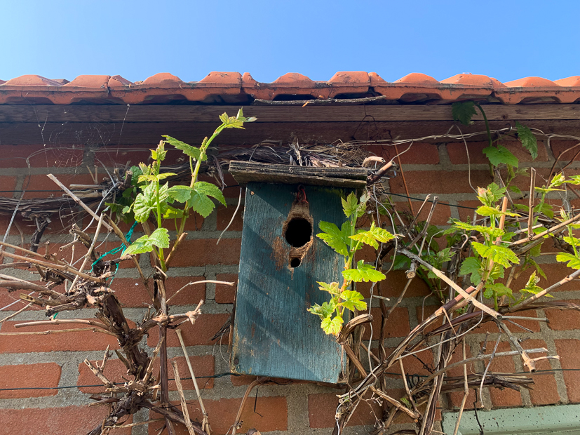 - Nog een paar weken en dan is het vogelhuisje verstopt achter de druivenstruiken