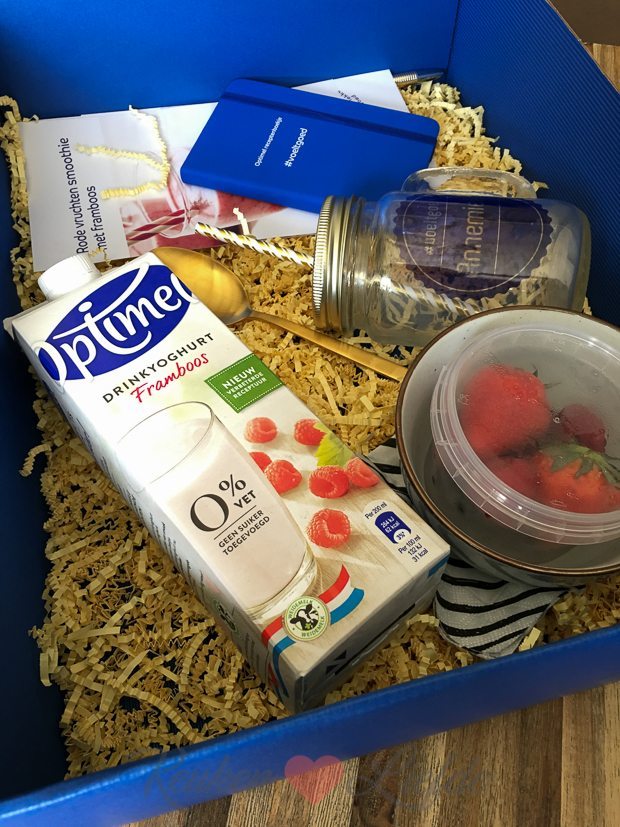 Foodpost! Van Optimel krijg ik een leuk pakketje met Optimel Drinkyoghurt, een bakje fruit, een mooi kommetje en lepel en een gepersonaliseerd glas. Superleuk! Het pak was leeg voordat ik kon knipperen met m’n ogen. Ella-Marie heeft er weer een nieuw favoriet drankje bij! 🙂 Johan en ik vonden hem trouwens ook erg lekker dus ik dat dat ‘ie voortaan vaker in onze koelkast staat.