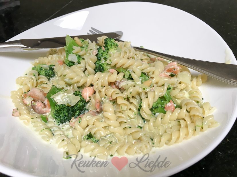 Daarna rijd ik met Ella langs de supermarkt om boodschappen te doen voor het avondeten. Het werd deze snelle pasta pesto met broccoli en zalm! (Recept? Pasta en broccoli koken. Ondertussen een sjalot, teentje knoflook en gedroogde chilivlokken glazig fruiten in een koekenpan met scheutje olijfolie. Verse pesto, handje geraspte parmezaan en room toevoegen aan de sjalot en saus iets laten inkoken – op smaak brengen met zout en peper. Dan pasta en broccoli afgieten en samen met stukjes gerookte zalm door saus mengen.)