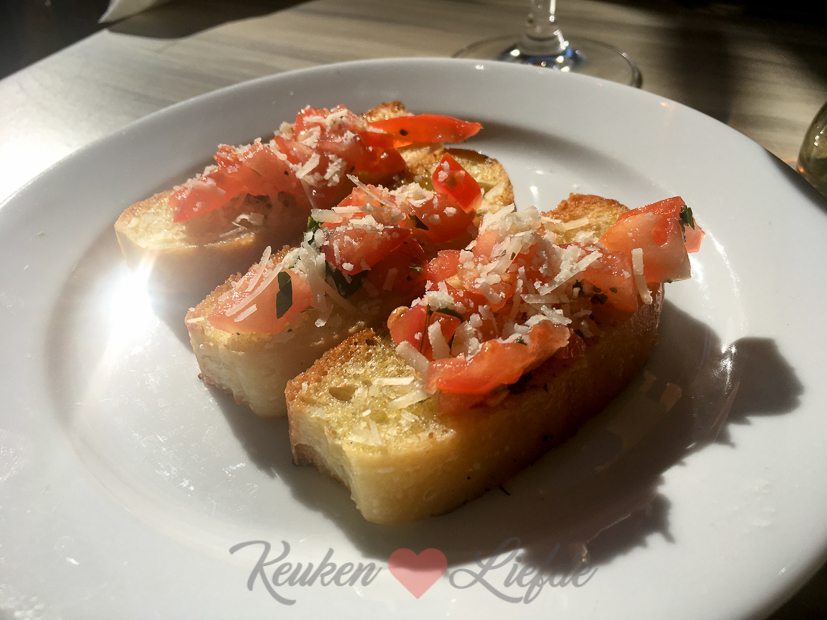 Daarna fietsen we over de dijk naar het voetveer in Wamel en steken we de Waal weer over naar Tiel. Het is dan al half zes en we besluiten maar meteen een hapje in de stad te gaan eten bij de Italiaan Rossetti.
